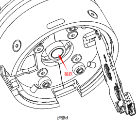 e.手动逆时针旋转磁铁支架,直至OmniPicker张开约50%的行程,如下图;